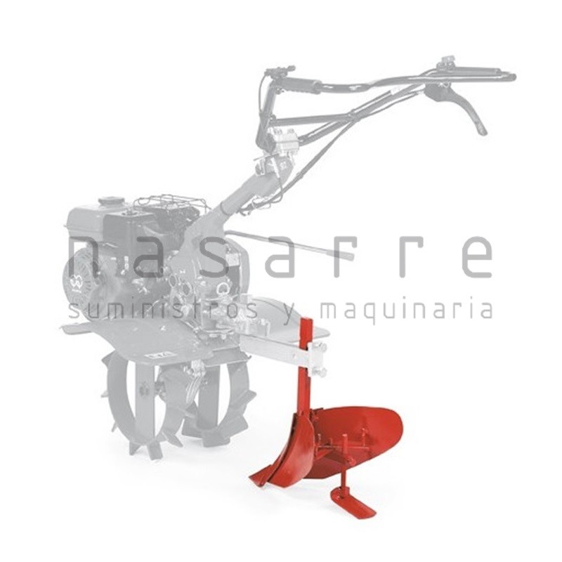 Accesorio para motoazada. Aporcador Honda nº1. Cuando se pasa entre las líneas, el aporcador hace un surco y descarga la tierra a cada unos de los lados, formando un caballón a los pies de las plantas.