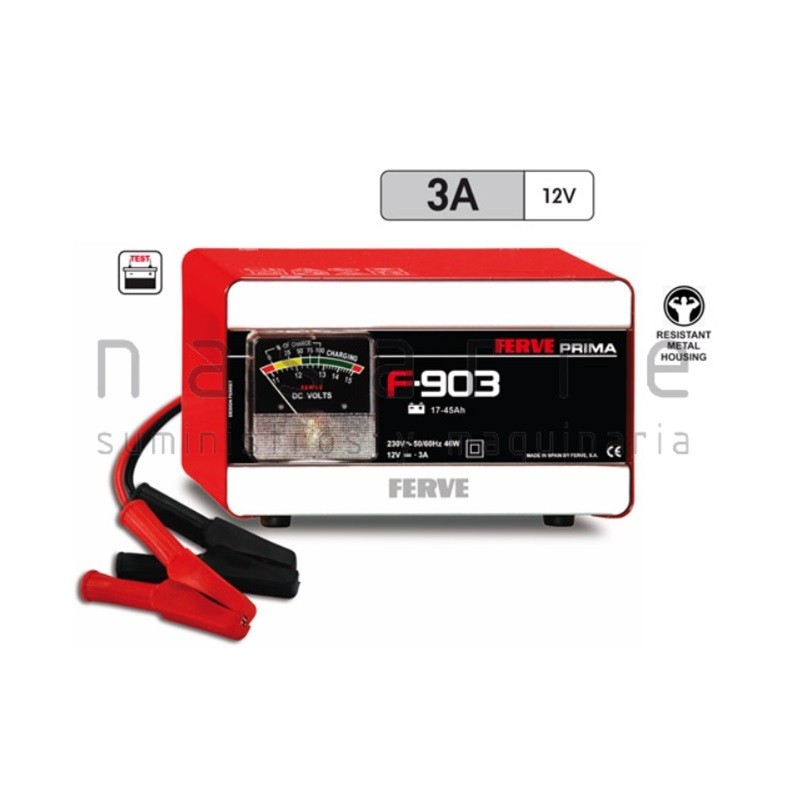 El cargador de batería Ferve F903 se incluye en la gama básica para carga de motocicletas y coches utilitarios. (Baterías de 17-45Ah) De fácil uso, pensados para satisfacer las necesidades del usuario no profesional. Especialmente indicados para recargas a fondo ocasionales.