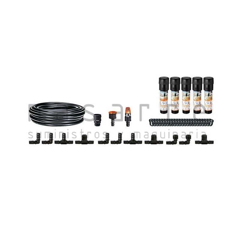 Kit Colibrí, sistema de riego con todo lo necesario para una instalación de riego por aspersores enterrados de unos 50m2.
