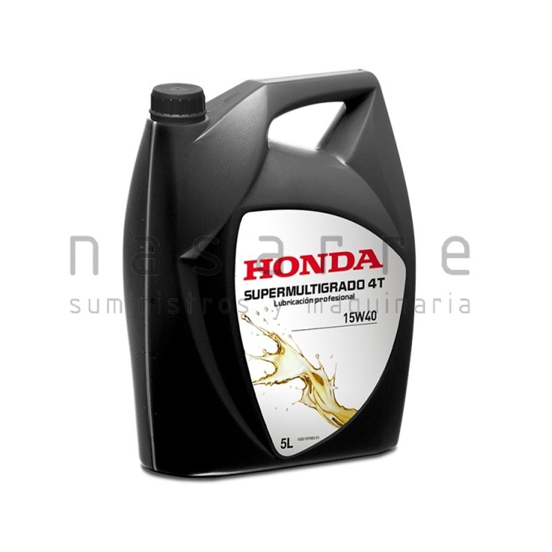 Aceite sintético Honda SUPERMULTIGRADO 4T 15W40 en envase de 5 litros.