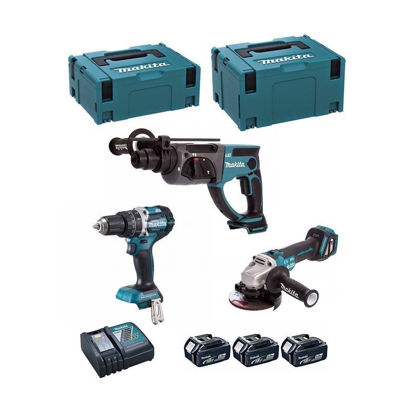 Nuestro kit incluye 3 baterías 18V 5,0 Ah, Cargador rápido y 2 Maletines Makpac.