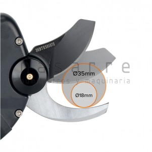 Se trata de una tijera de poda eléctrica accionada por batería. Ha sido diseñada para cortar ramas de hasta 38mm. Simple y fácil de utilizar, su peso es de 1.235kg.